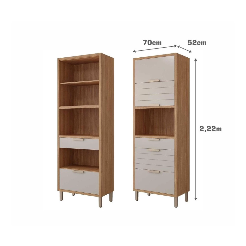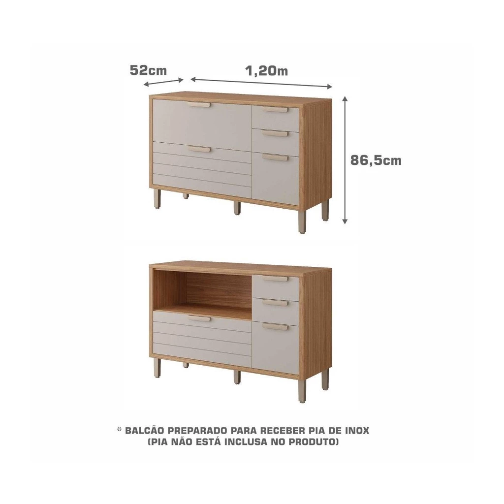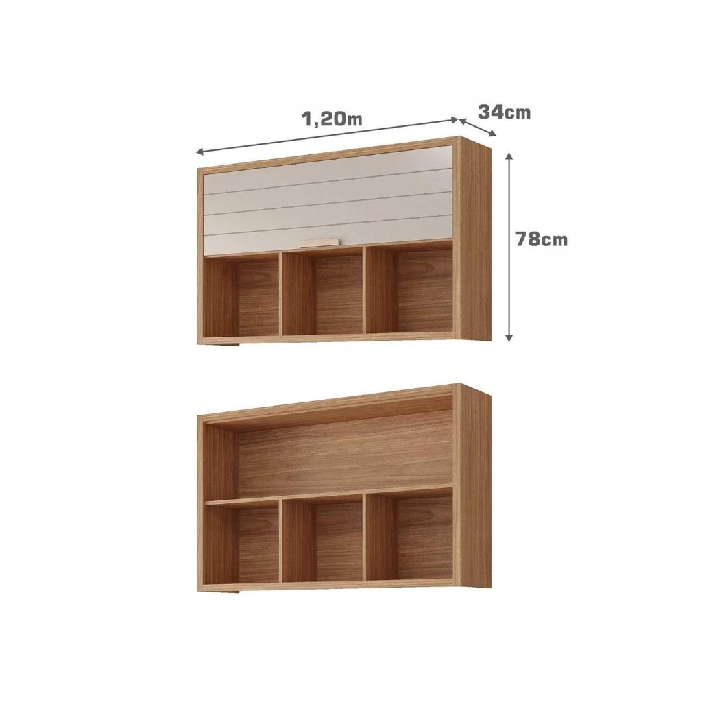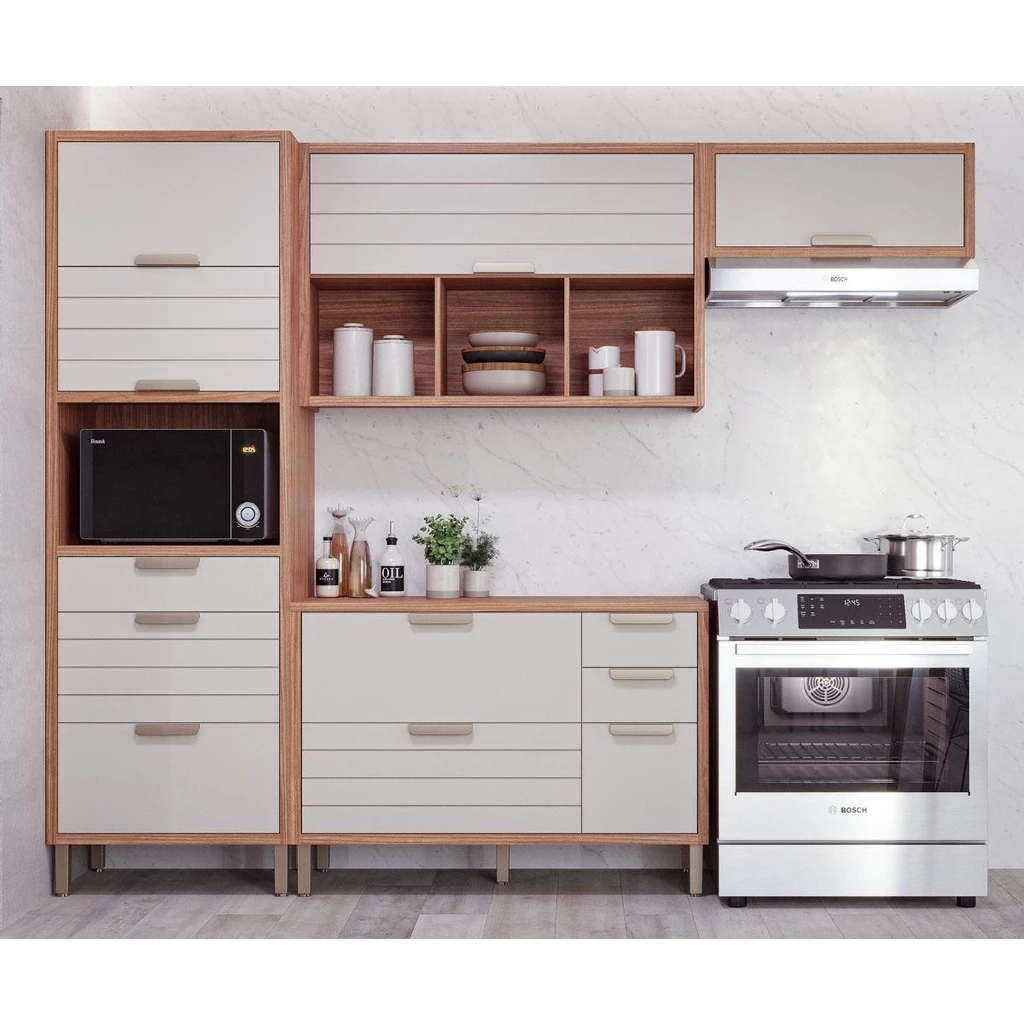 Cozinha Compacta 4 Pçs 2 Aéreos 1 Balcão E Torre Quente C/ 1 Nicho Eloise Mgm Freijó/Off White