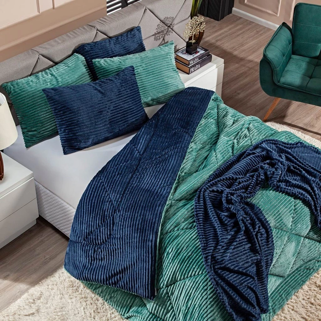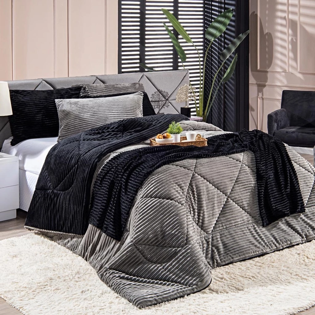 Kit Coberdrom KING 03 Peças Edredom Cobertor Dupla Face Canelado Denver Manta Quente com Fronhas