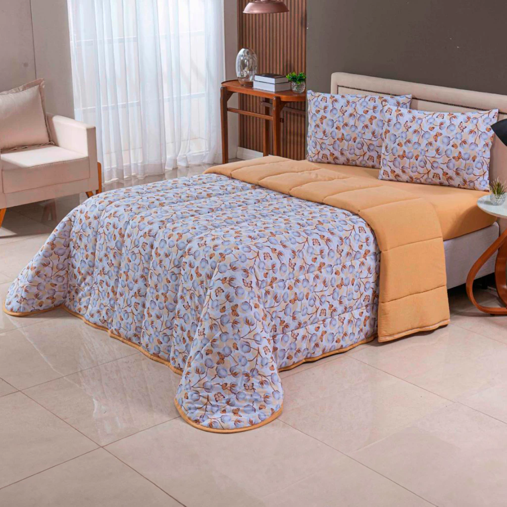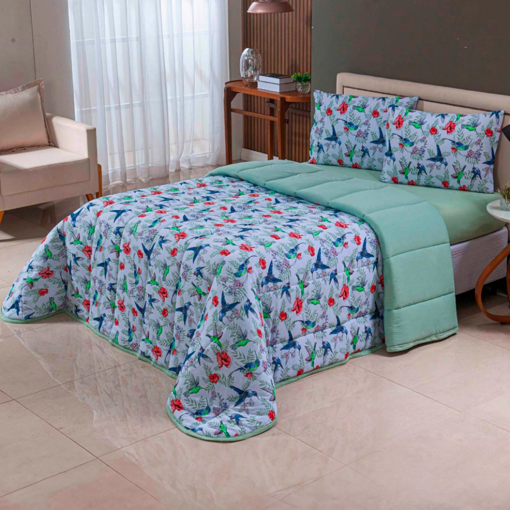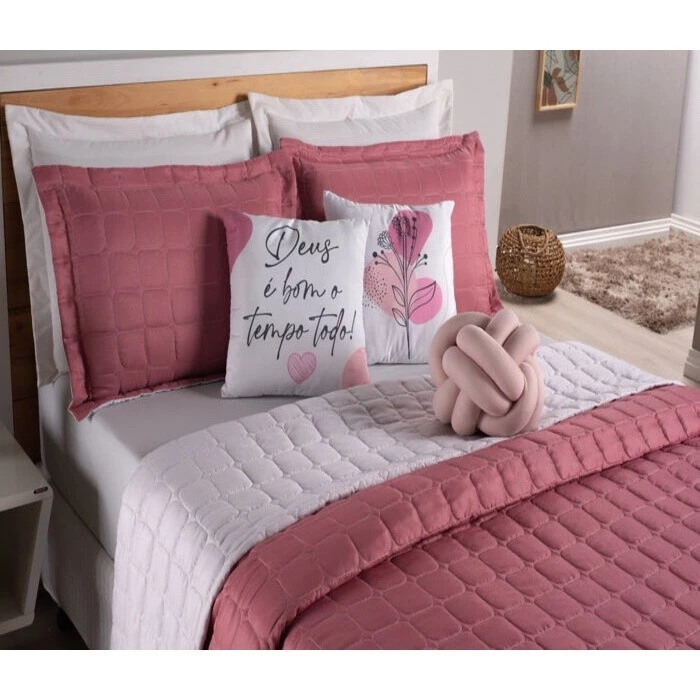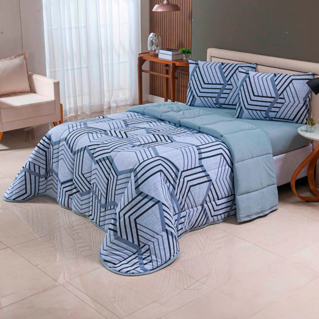 Kit Edredom Malha 100% Algodão Com Jogo de Lençol King Queen Casal