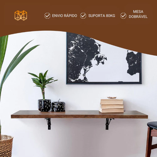 Mesa Retratil dobravel Borda Quadrada 120cm x 50cm de parede