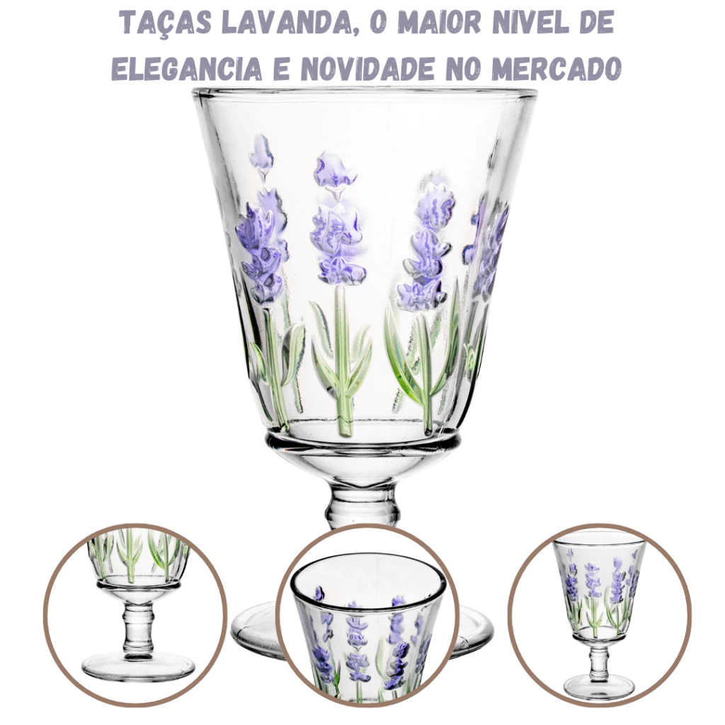 ogo Taças de Vidro Vinho Agua 240ml 6 pçs Lavanda