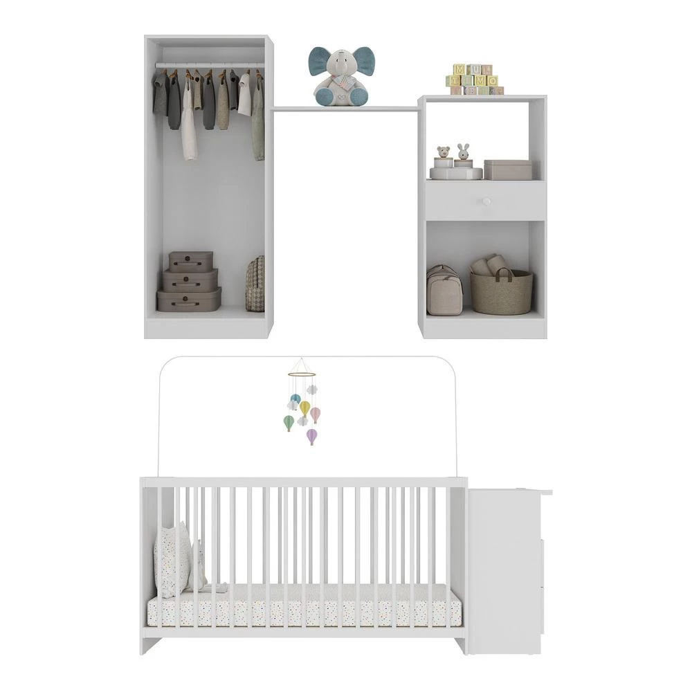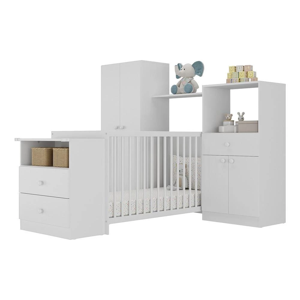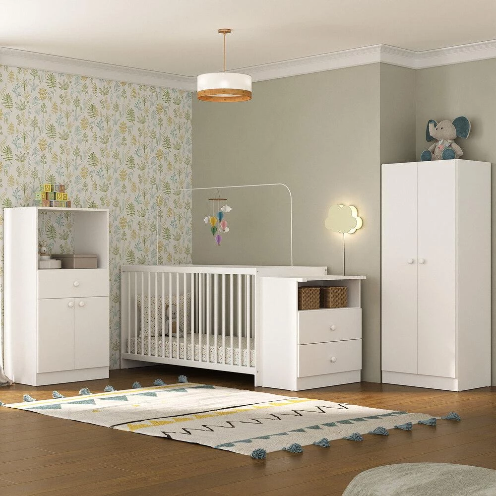 Quarto Completo Pimpolho com berço 3 em 1 com rodízios Multimóveis Branco