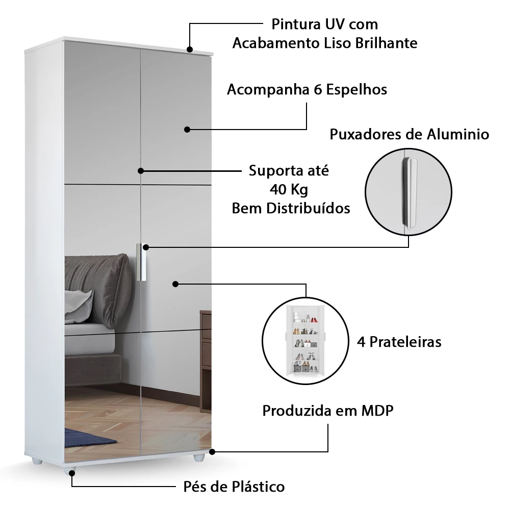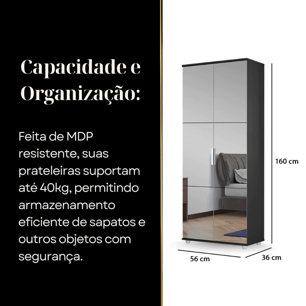 Sapateira Rubi 2 Portas com Espelho 1 Gaveta para 15 pares de Sapato