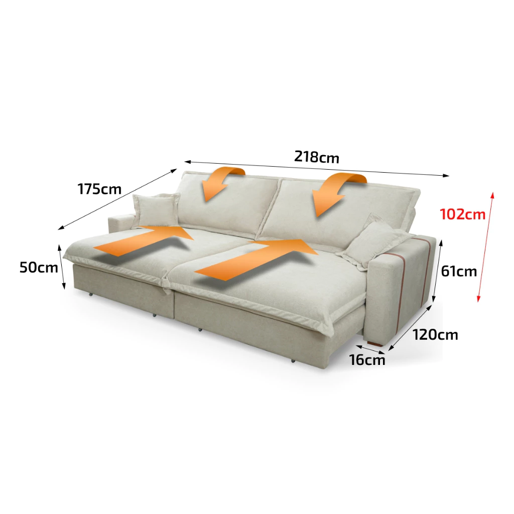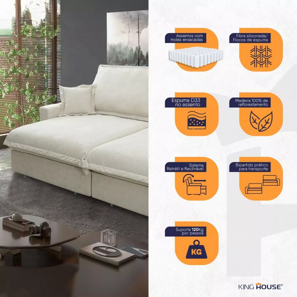 Sofá Retrátil Reclinável Nairobi 2,18m Bege Bouclê